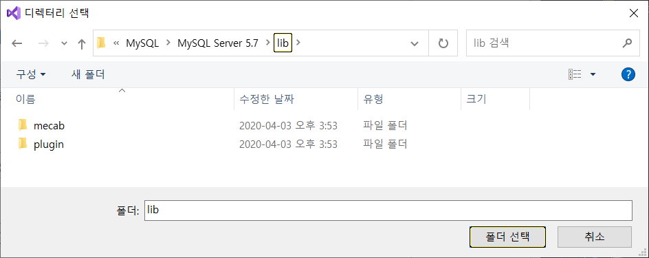 ※ MySQL 5.7.29와 VS 2019 연동 절차