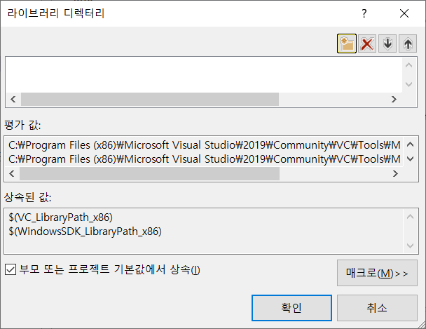 → 구성속성 - VC++ 디렉토리 - 일반 – 라이브러리 디렉토리에 줄 추가를 하여