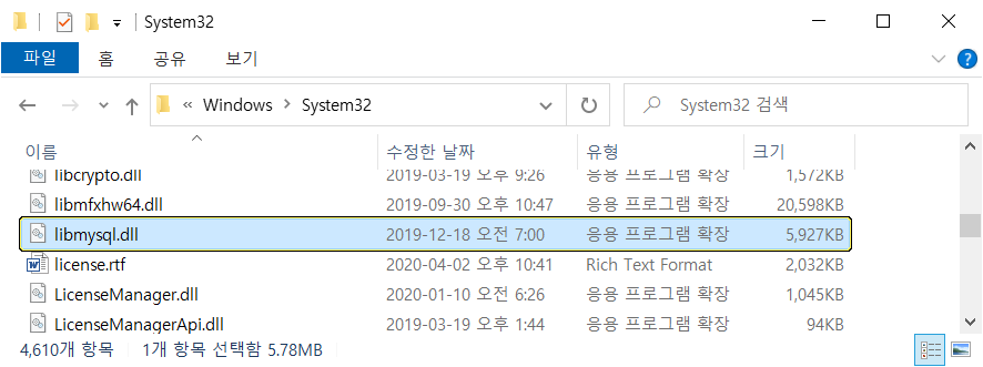 libmysql.dll 이 있습니다. dll 복사 후에,