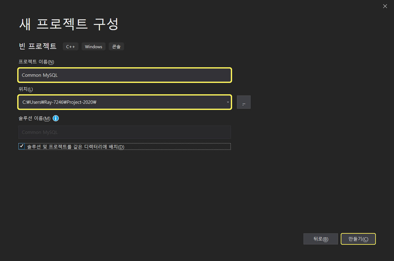 Common MySQL로 프로젝트 이름을 만들어줍니다.