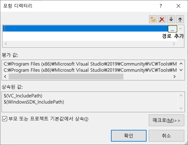 → 구성속성 - VC++디렉토리 - 일반 – 포함 디렉토리에 줄 추가를 하여