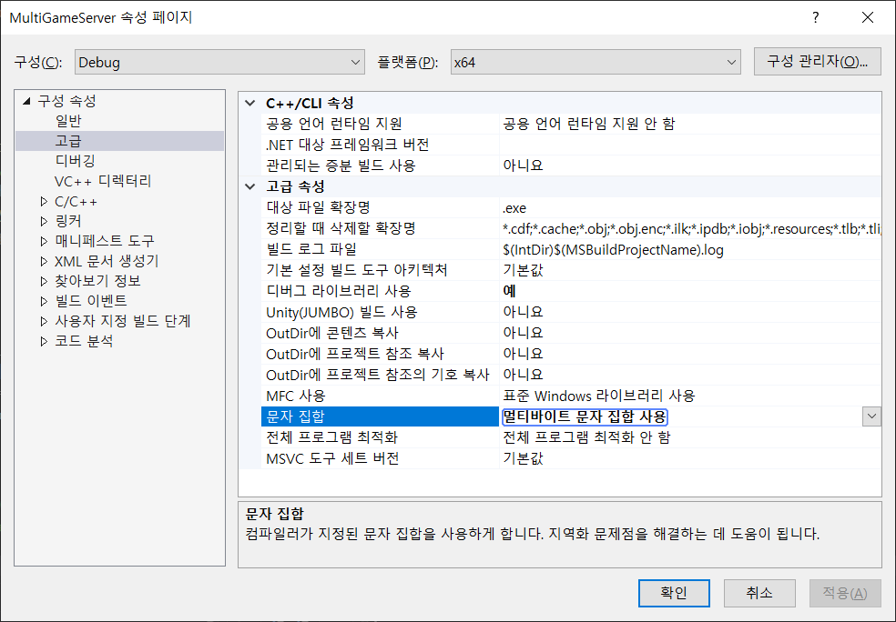 유니코드 문자 집합에서 멀티바이트 문자 집합 사용으로
