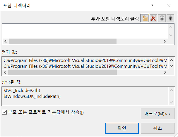 포함 디렉토리를 선택하고 편집합니다. 아이콘을 선택해서 편집합니다.