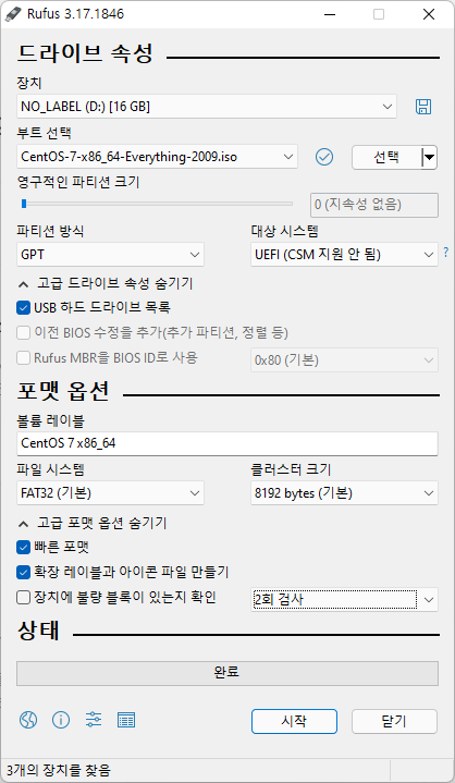 CENTOS 7 설치 부팅디스크 만들기 CENTOS 7 설치 부팅디스크 만들기 Rufus 프로그램을 사용해서 부팅 USB 메모리를 만드는 방법입니다. 윈도우 및 리눅스, DOS 등의 대부분의 부팅가능한 OS 이미지를 모